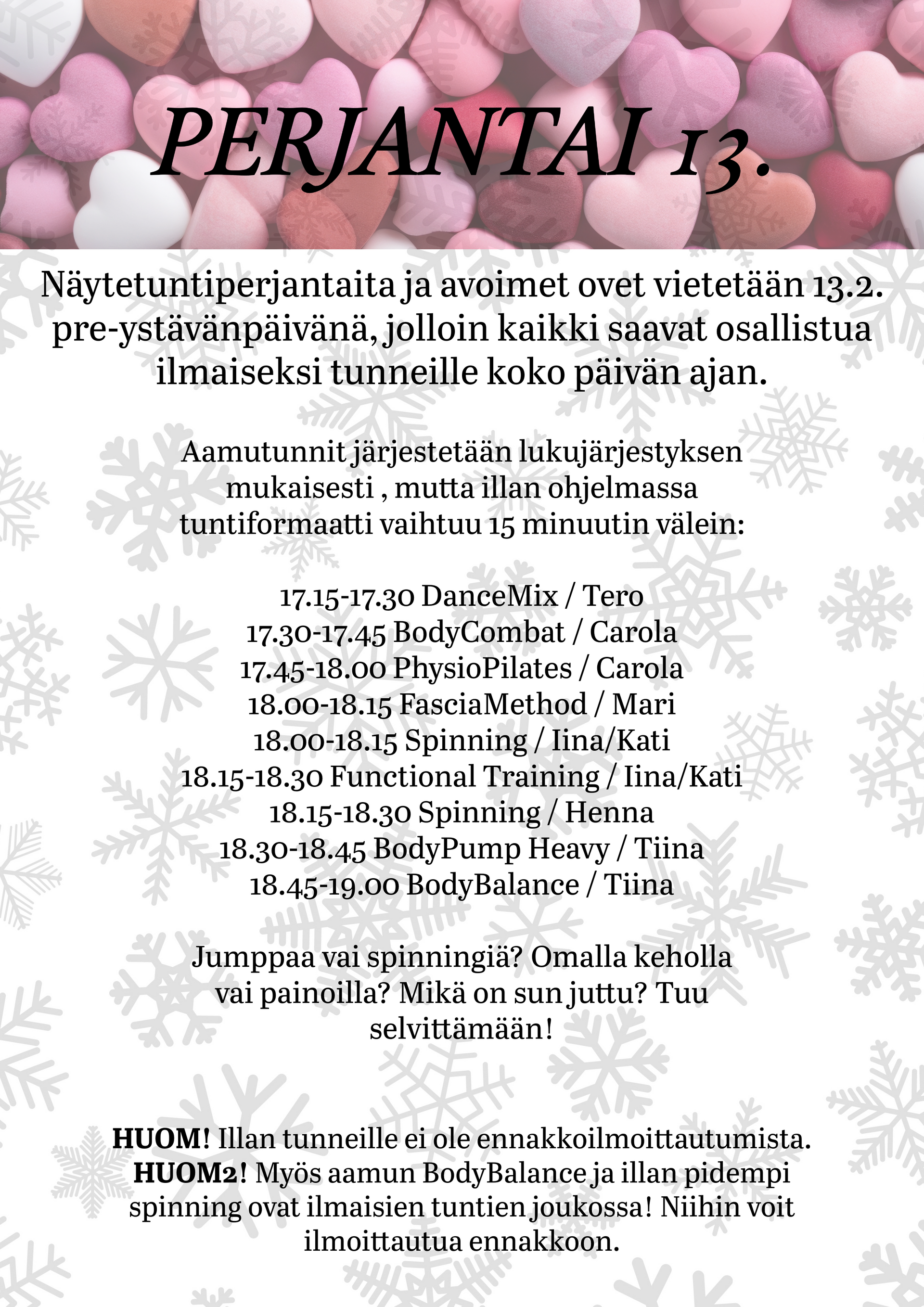 Katso kuntosalin ajankohtaiset asiat ja mahdolliset tuntimuutokset Facebookista